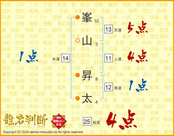 峯山昇太さんの総運は25画の4点!