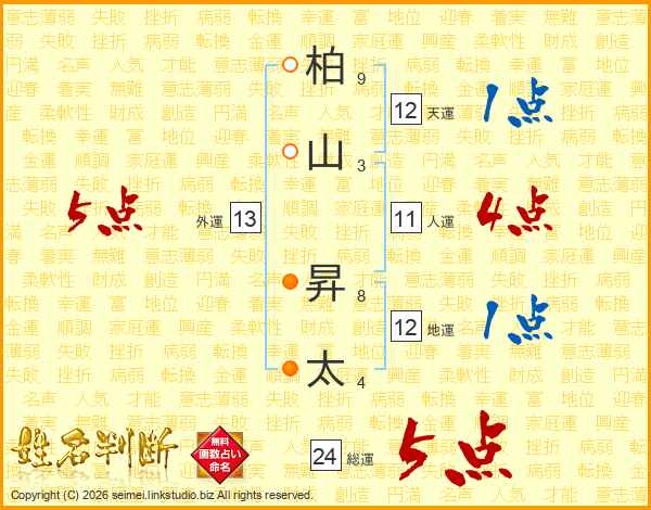 柏山昇太さんの総運は24画の5点!