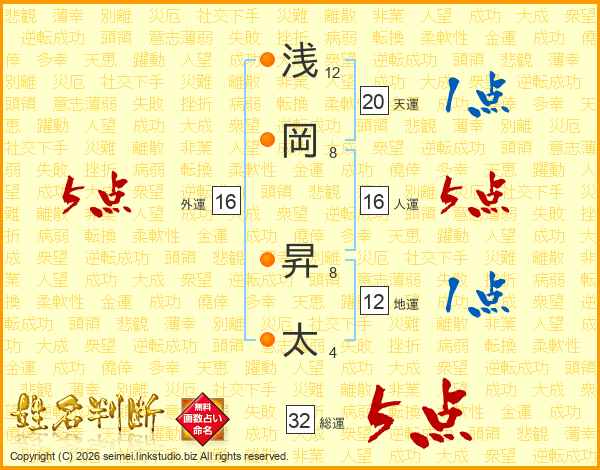 浅岡昇太さんの総運は32画の5点!