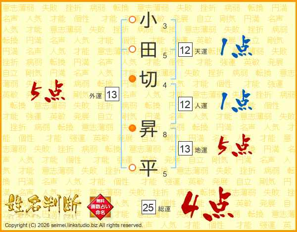 小田切昇平さんの地運は13画の5点!