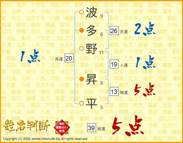 波多野昇平さんの総運は39画の5点!