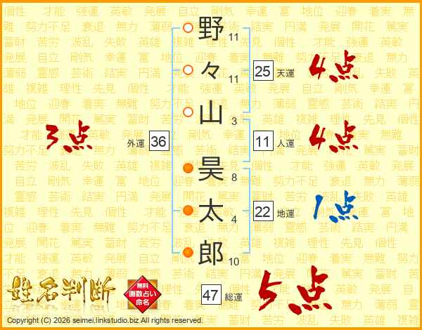 野々山昊太郎さんの総運は47画の5点!