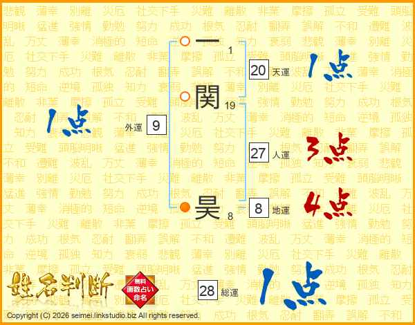 一関昊さんの総運は28画の1点!