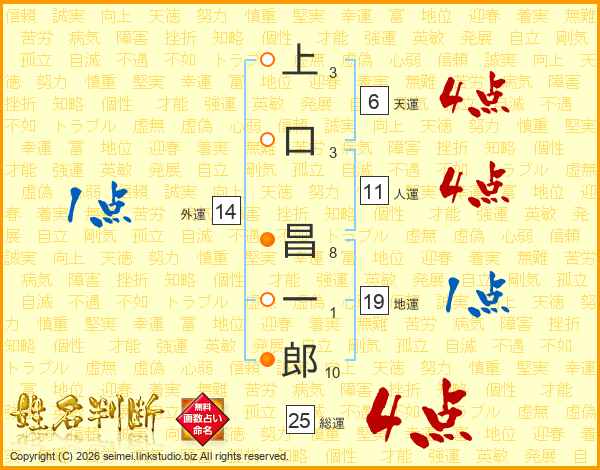 上口昌一郎さんの総運は25画の4点!