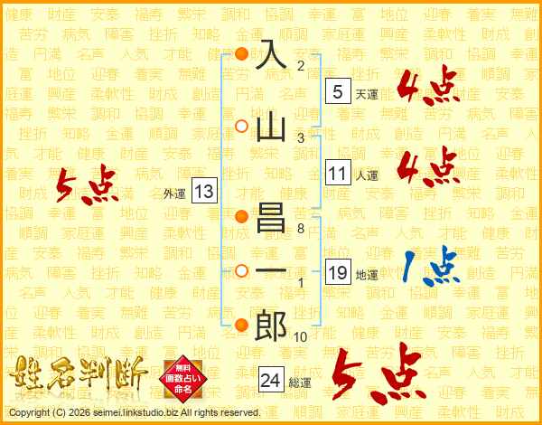 入山昌一郎さんの総運は24画の5点!
