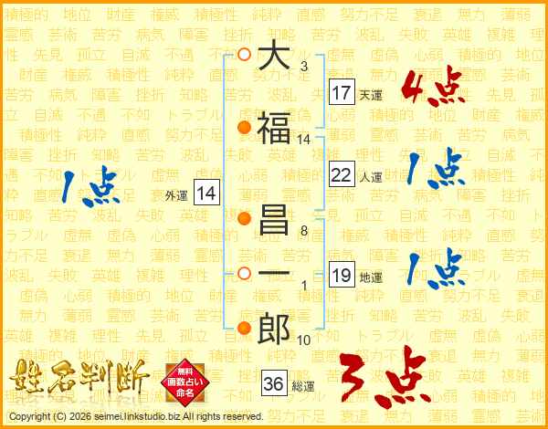 大(3画)福(14画) 昌(8画)一(1画)郎(10画)