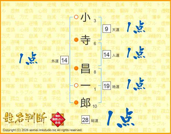 小寺昌一郎さんの人運は14画の1点!