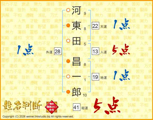 河東田昌一郎さんの総運は41画の5点!