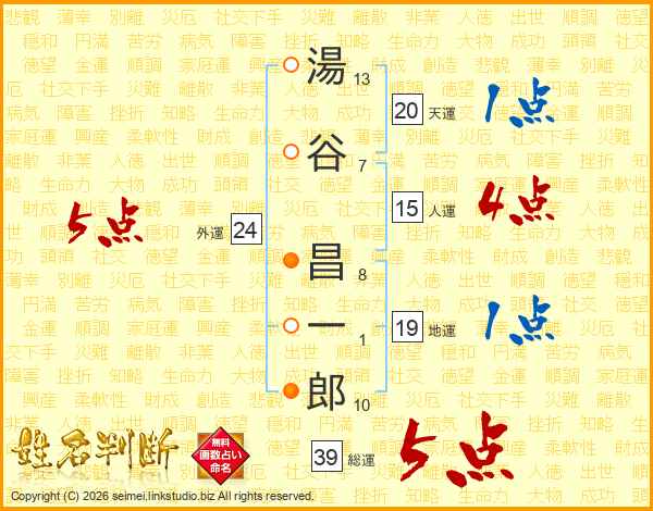 湯谷昌一郎さんの総運は39画の5点!