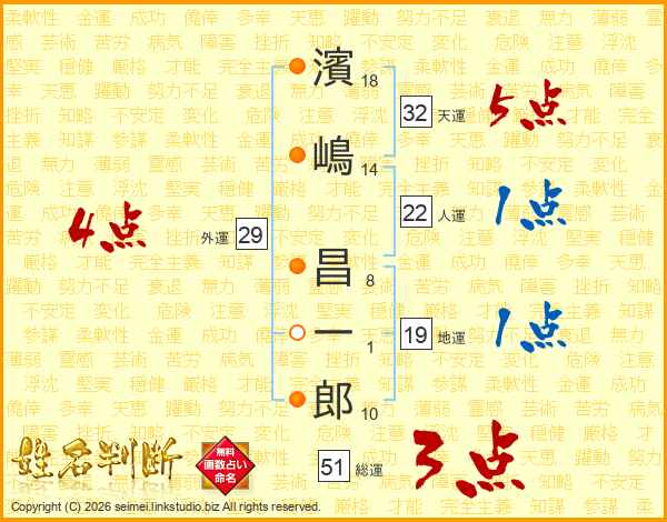 濱嶋昌一郎さんの天運は32画の5点!
