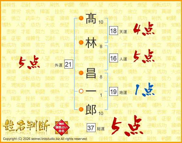 髙林昌一郎さんの天運は18画の4点!