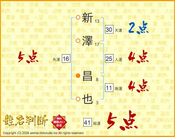 新澤昌也さんの総運は41画の5点!