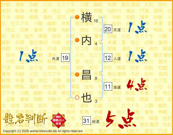 横内昌也さんの総運は31画の5点!