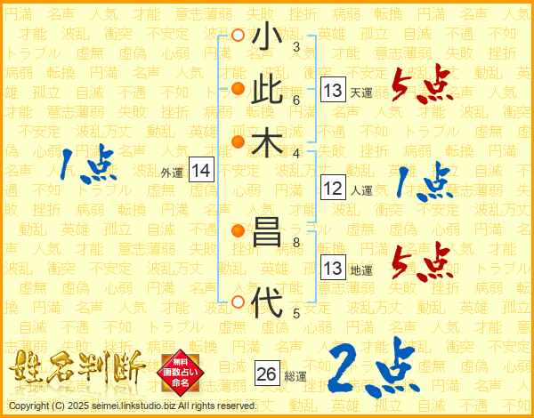 小此木昌代さんの天運は13画の5点!