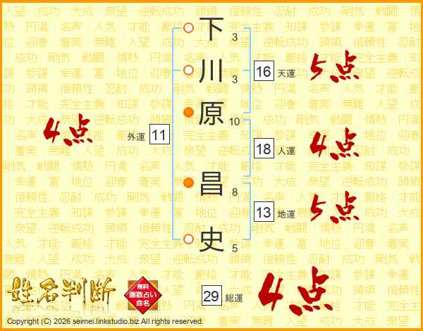 下(3画)川(3画)原(10画) 昌(8画)史(5画)