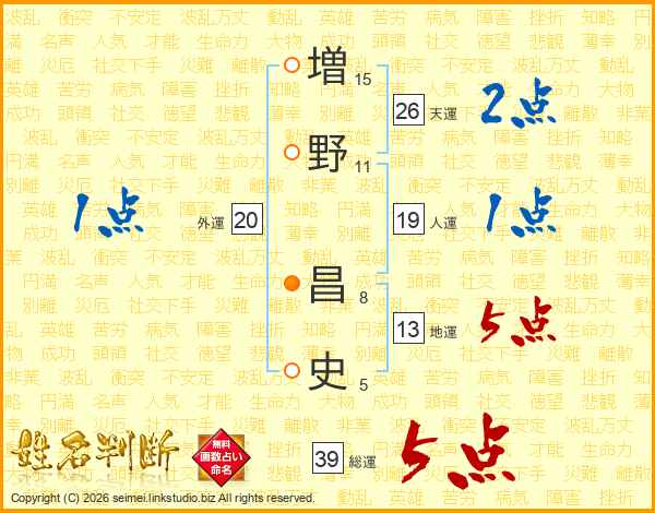 増野昌史さんの総運は39画の5点!