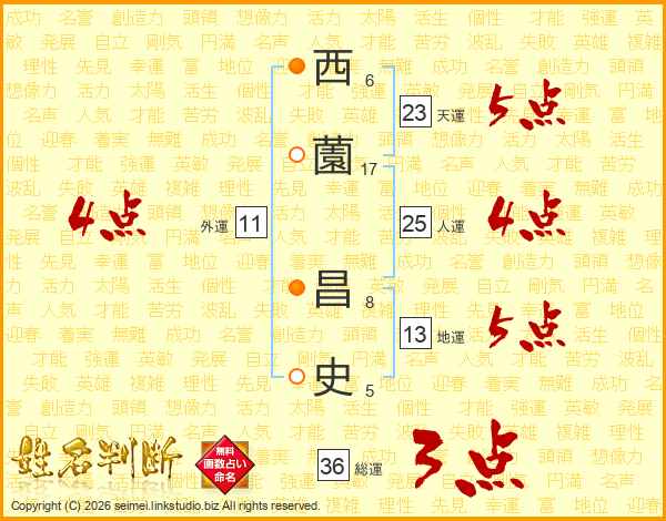 西(6画)薗(17画) 昌(8画)史(5画)