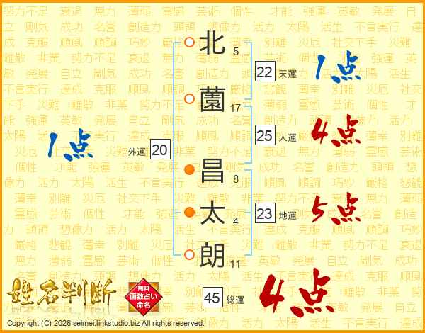 北薗昌太朗さんの総運は45画の4点!