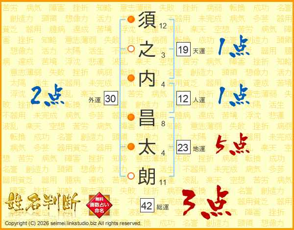 須之内昌太朗さんの天運は19画の1点!