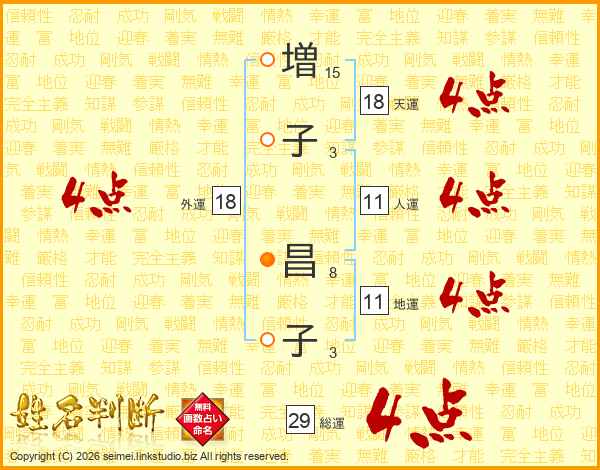 増子昌子さんの総運は29画の4点!