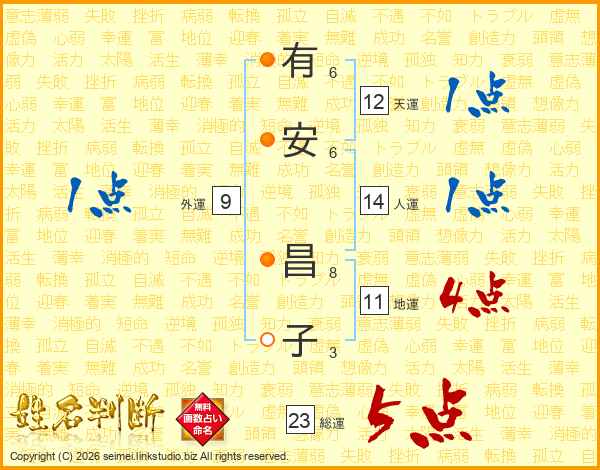 有安昌子さんの総運は23画の5点!