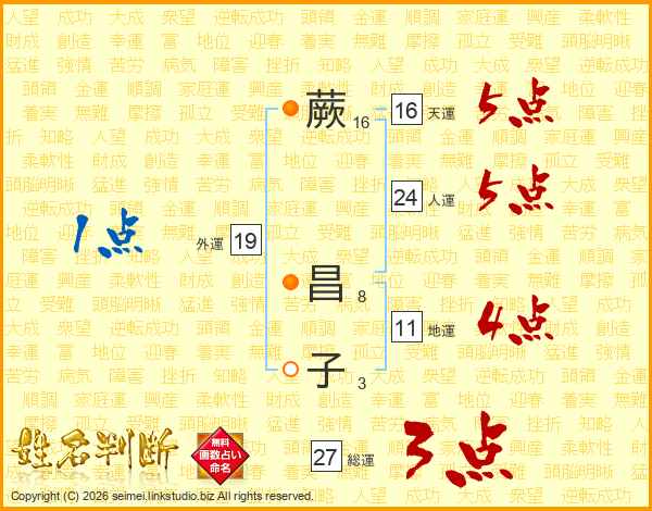 蕨(16画) 昌(8画)子(3画)