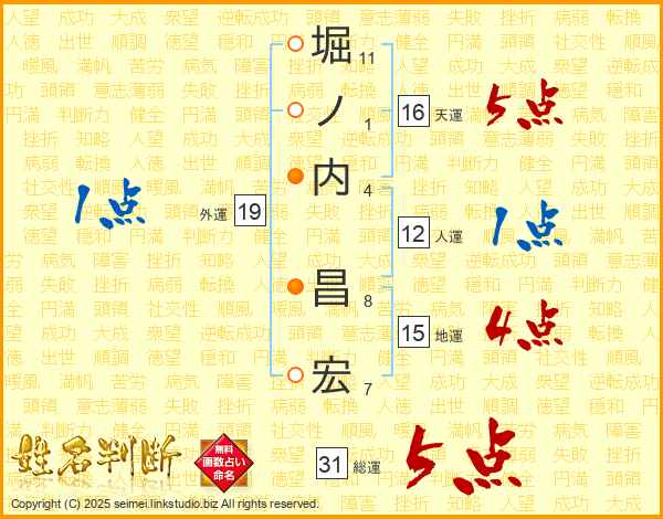 堀ノ内昌宏さんの総運は31画の5点!