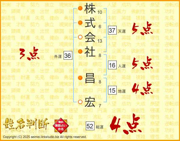 株(10画)式(6画)会(13画)社(8画) 昌(8画)宏(7画)
