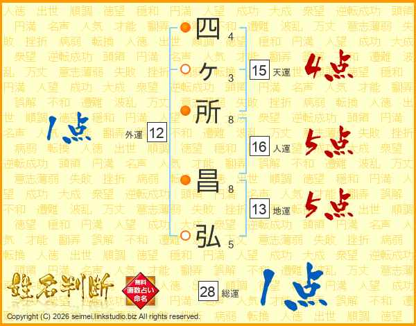 四(4画)ヶ(3画)所(8画) 昌(8画)弘(5画)