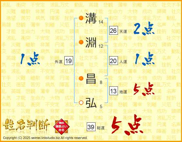 溝淵昌弘さんの総運は39画の5点!