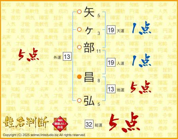 矢(5画)ヶ(3画)部(11画) 昌(8画)弘(5画)