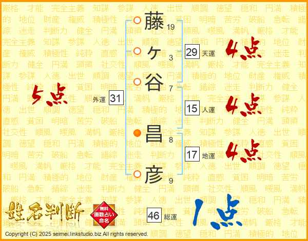 藤ヶ谷昌彦さんの総運は46画の1点!