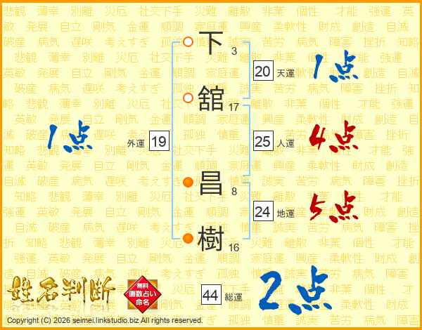 下(3画)舘(17画) 昌(8画)樹(16画)