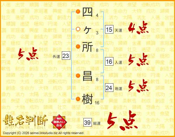 四(4画)ヶ(3画)所(8画) 昌(8画)樹(16画)