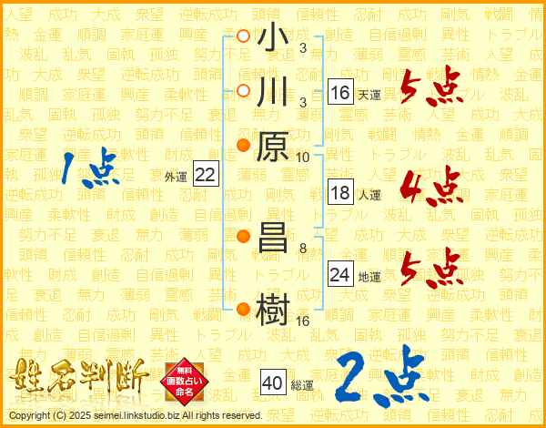 小(3画)川(3画)原(10画) 昌(8画)樹(16画)