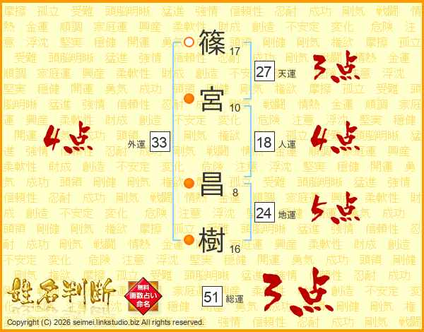 篠(17画)宮(10画) 昌(8画)樹(16画)