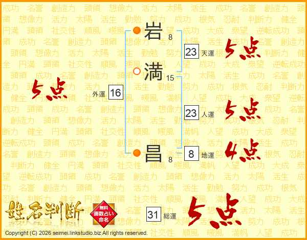 岩(8画)満(15画) 昌(8画)