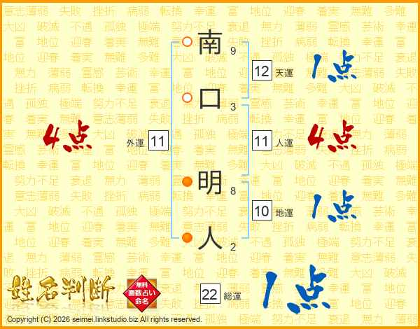 南口明人さんの人運は11画の4点!