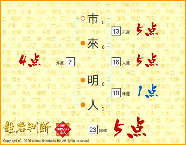 市來明人さんの総運は23画の5点!