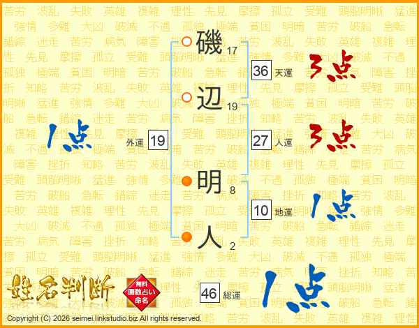 磯辺明人さんの総運は46画の1点!