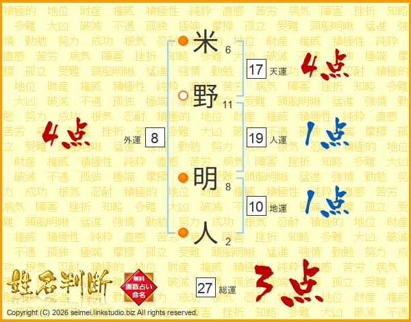 米野明人さんの総運は27画の3点!