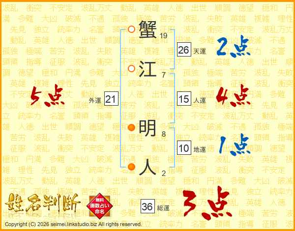 蟹江明人さんの総運は36画の3点!