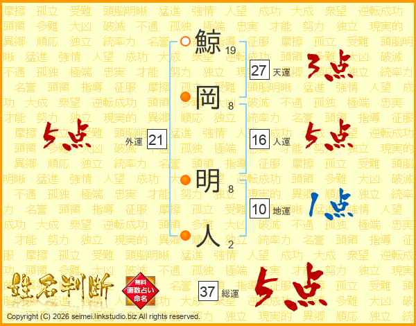 鯨岡明人さんの総運は37画の5点!