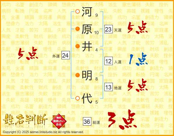 河(9画)原(10画)井(4画) 明(8画)代(5画)