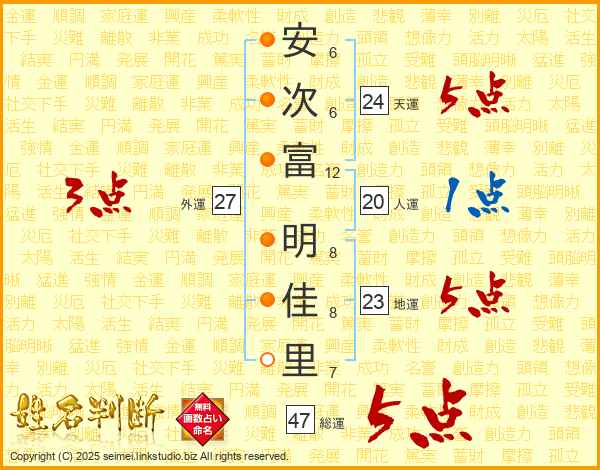 安次富明佳里さんの総運は47画の5点!