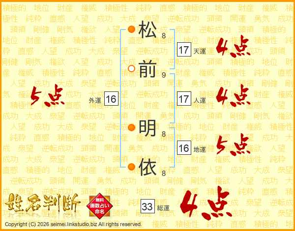 松(8画)前(9画) 明(8画)依(8画)