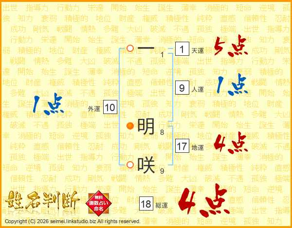 一明咲さんの総運は18画の4点!