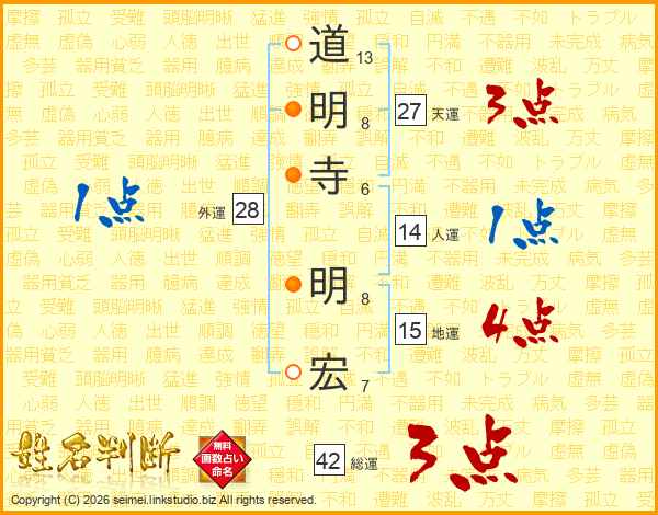 道明寺明宏さんの総運は42画の3点!