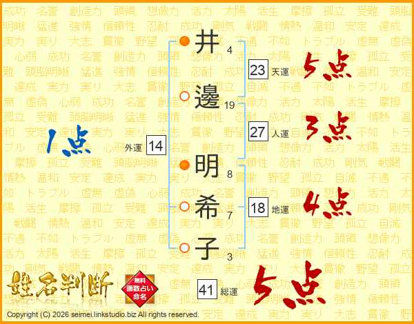 井(4画)邊(19画) 明(8画)希(7画)子(3画)