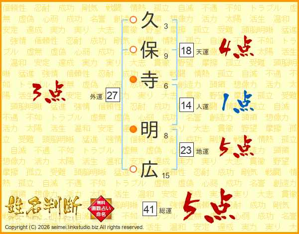 久保寺明広さんの総運は41画の5点!